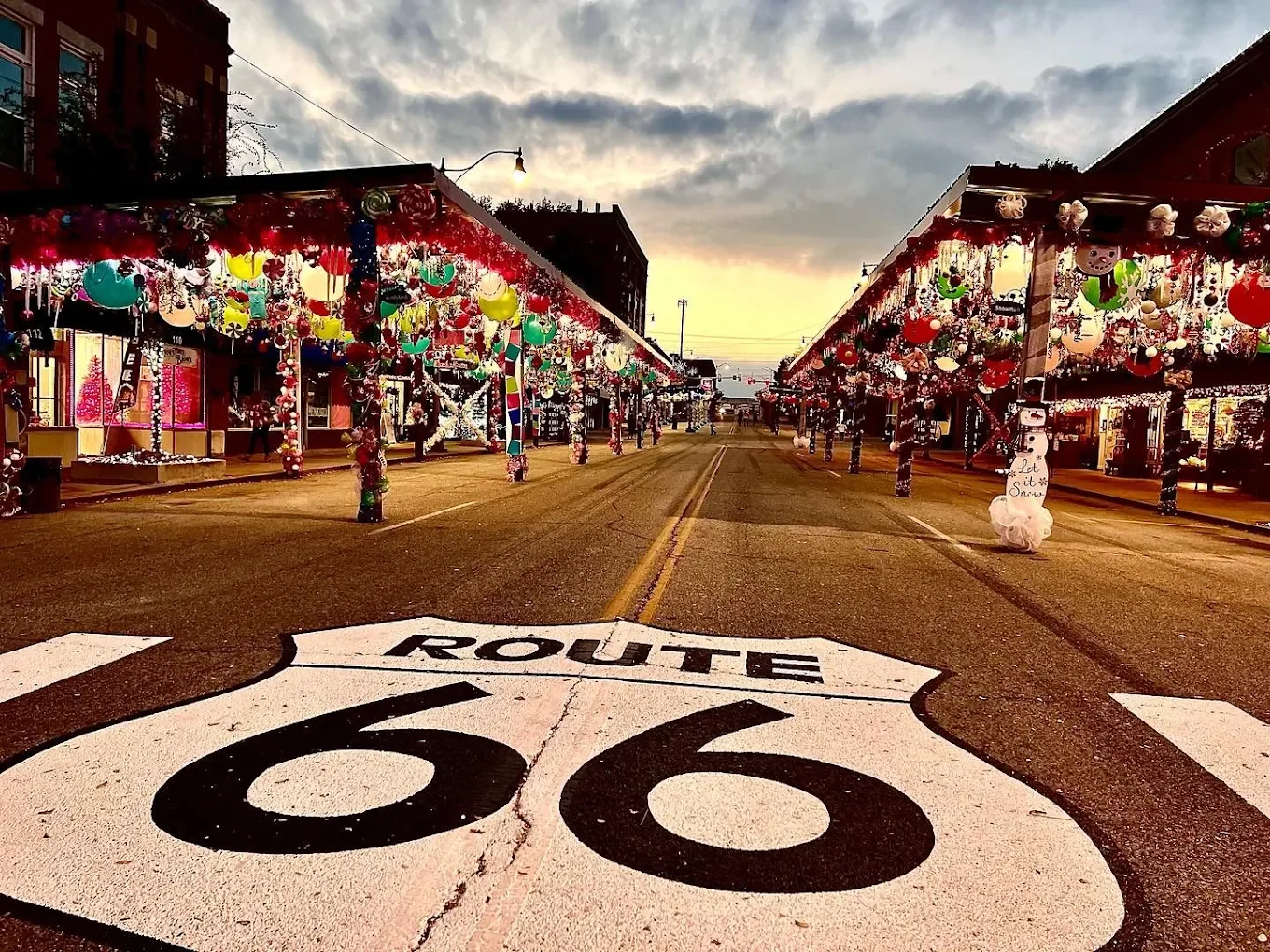 We’ll wrap up the day in Sapulpa, strolling along historic Route 66 under magical canopies filled with Christmas ornaments and themed décor.